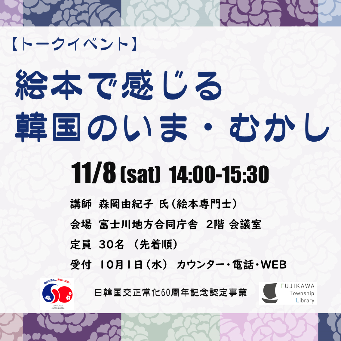 11/8【日韓国交正常化60周年記念トークイベント】〈絵本で感じる 韓国のいま・むかし〉