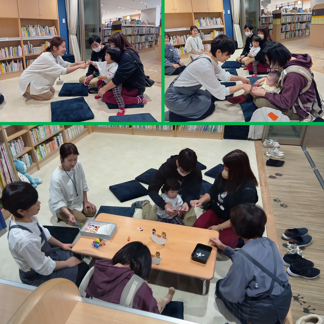 寒い季節ですが、参加いただけるのは嬉しいです。親御さんがお子さんの手を取って、絵本と同じポーズをしたり、しぐさをしたり、とても素敵なコミュニケーションでしたよ。